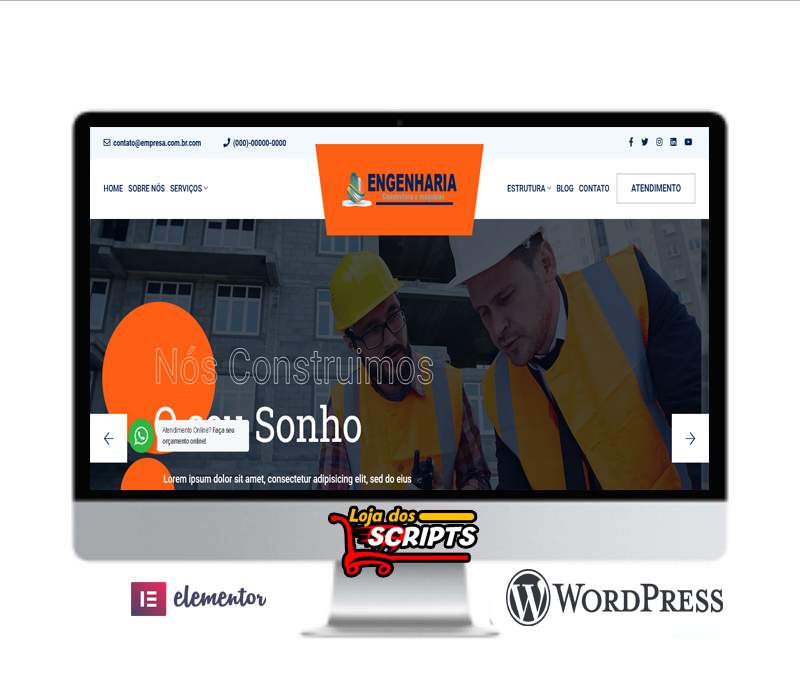 Script super moderno para Construtoras , Engenharias , pedreiros e outros , super administrável em plataforma WordPress, com instalador automático, editável via front end, vale muito a pena adquirir este script pois é moderno criado agora em 2023, acompanha vídeo aula de instalação e edição, suporte total durante a instalação do script