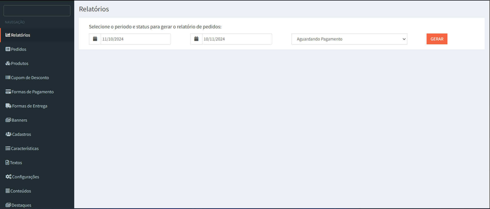 – Pedidos ( Incompletos, Aguardando Pagamento, Pedidos Confirmados e mais )